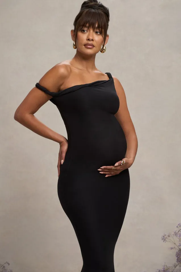 Lita | Black Twisted Asymmetric Maternity Maxi Dress