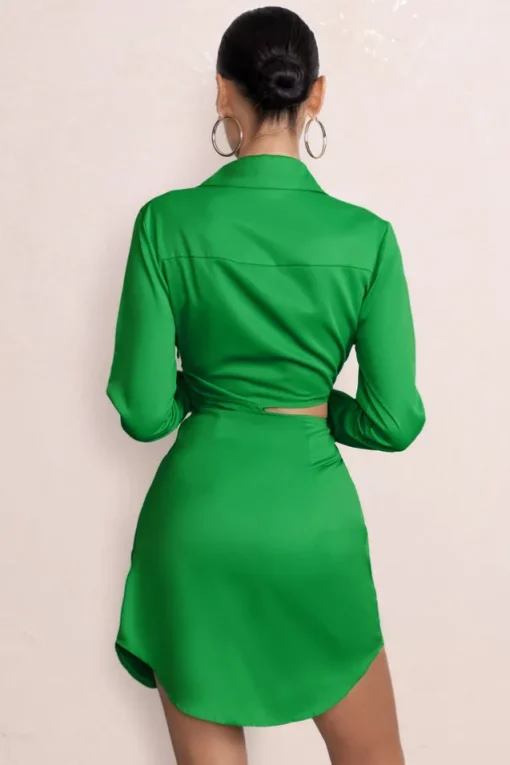 Lucky Star | Green Cut Out Wrap Front Shirt Mini Dress