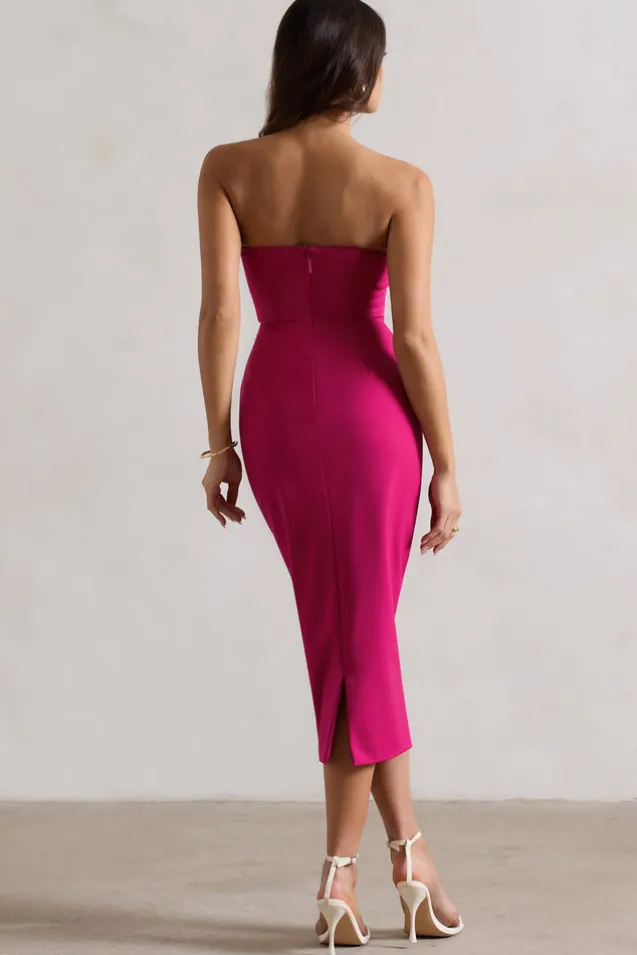 Nina | Dark Pink Structured Strapless Corset Midi Dress