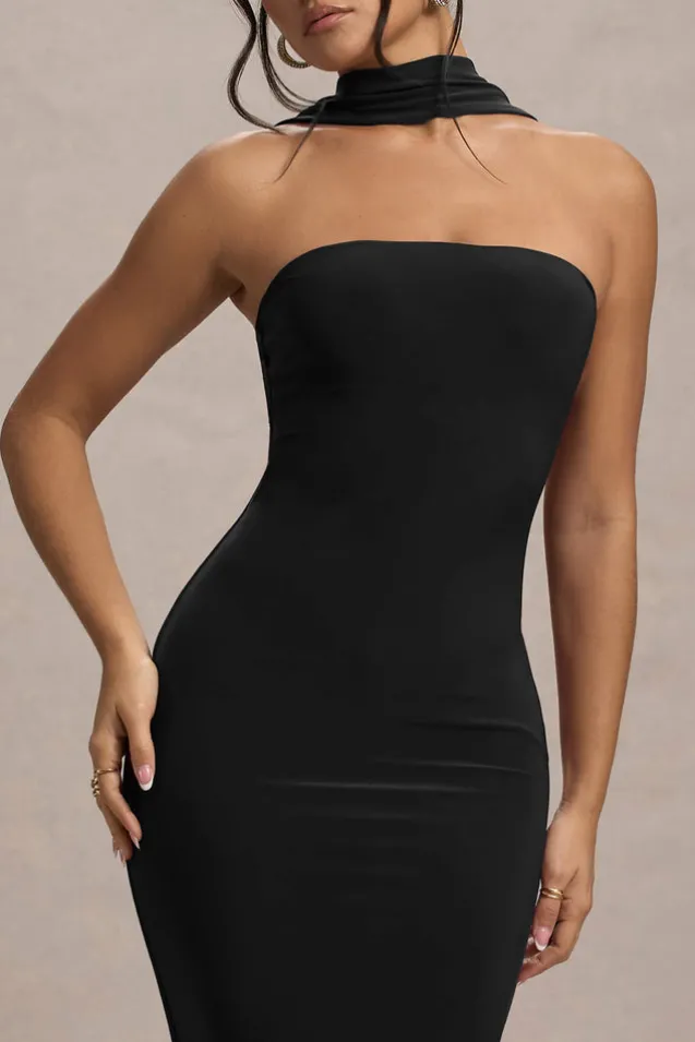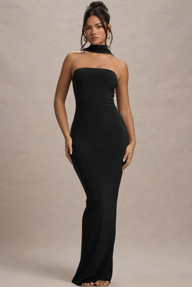Nobu | Black Bandeau Maxi Dress With Halter-Collar