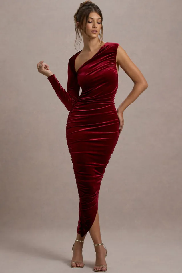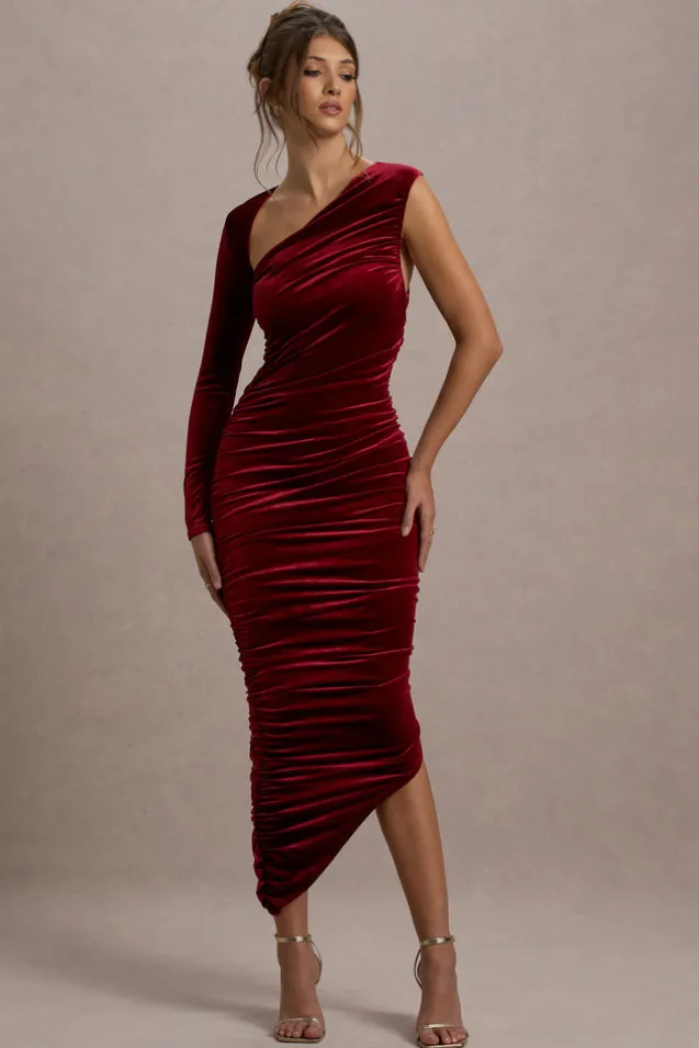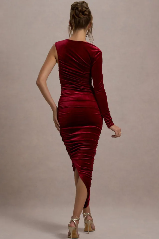 Northern Light | Berry Velvet Asymmetric One-Sleeved Midi Dress