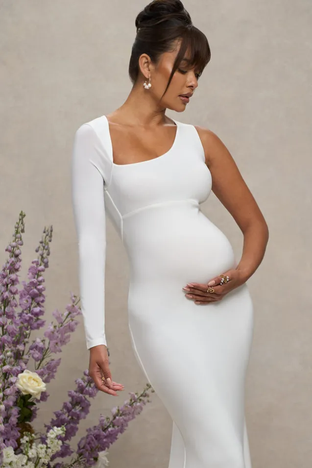 Oh Baby | White Maternity One Shoulder Bodycon Maxi Dress
