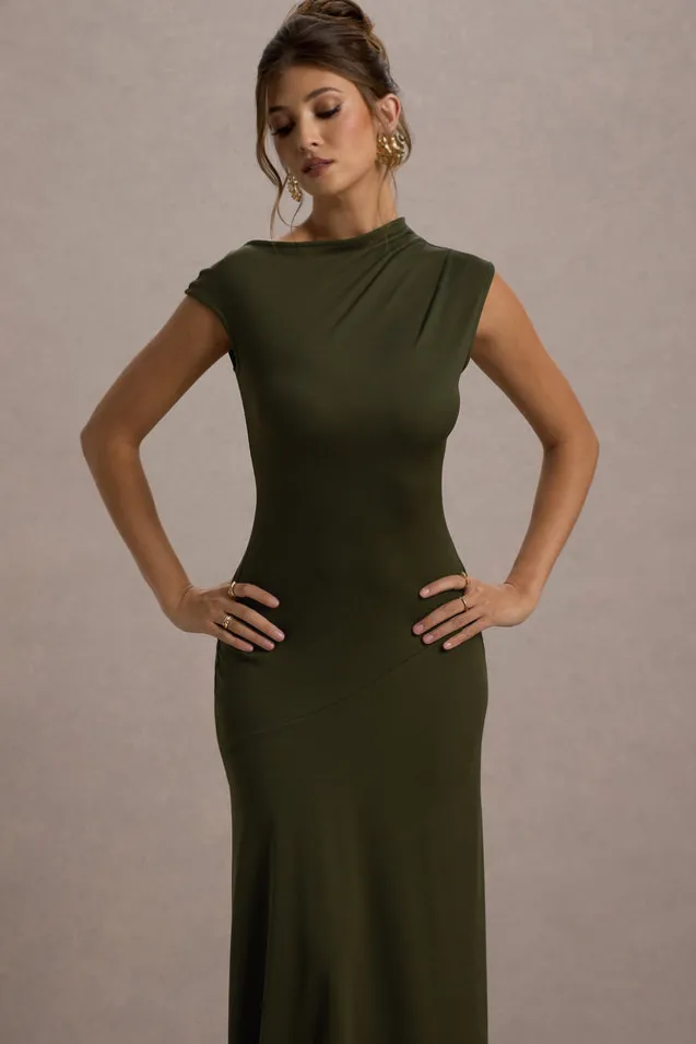 A striking staple, Ondine is a captivating option for your next special occasion. Crafted in a premium ribbed jersey, this khaki midi is detailed by its contemporary neckline, cap sleeves and artful asymmetric hemline. Features – Premium stretch ribbed jersey – Asymmetric neckline – Cap sleeves- Asymmetric hemline – Midi length Sizing & Fit Model is 5’7 and wears UK size 8/US size 4 Product Information Designed exclusively by Club L London Double layered/good stretch Premium ribbed jersey in Khaki (95% Polyester, 5% Elastane) 150cm total length