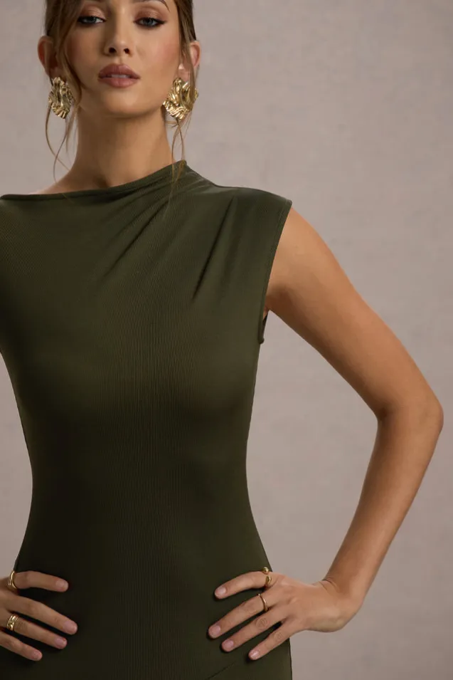 Ondine | Khaki Asymmetric Draped Midi Dress