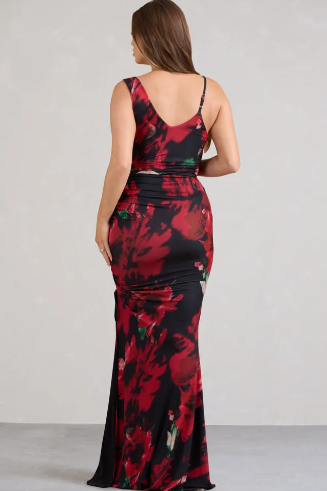 Phantasy | Red Floral Asymmetric Split Maternity Maxi Dress