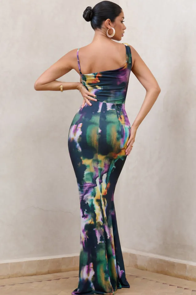 Phantasy | Watercolour Print Asymmetric Neckline Cowl Maxi Dress