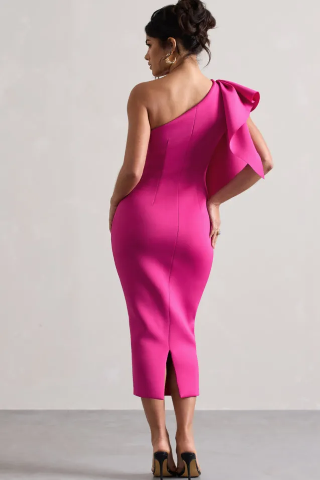 Polo | Dark Pink One Shoulder Bodycon Midi Dress With Ruffle