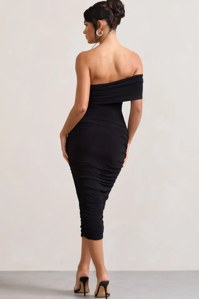 Remember Me | Black One Shoulder Midi Dress