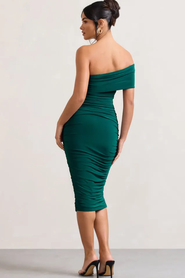 Remember Me | Bottle Green One Shoulder Midi Dress