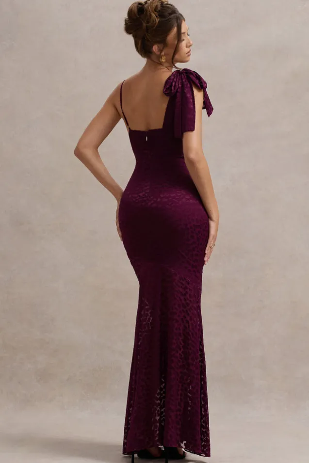 Designed for sipping exotic drinks along stunning Spanish coastlines, Sangria is a suitcase must-have. Carefully crafted in a unique satin jacquard, this floor-sweeper boasts an asymmetric cowl neckline, self-tie shoulder strap and semi-sheer skirt. Compliment its rich burgundy tone with some gold accents like Waves.Features – Premium satin jacquard- Asymmetric cowl neckline – Self-tie shoulder strap- Adjustable cami strap- Invisible zip closure- Maxi length Sizing & Fit Model is 5’7 and wears UK size 8/US size 4 Product Information Designed exclusively by Club L London Partially lined with some stretch Premium satin jacquard in Burgundy (51% Polyamide, 49% Viscose) 155cm total length